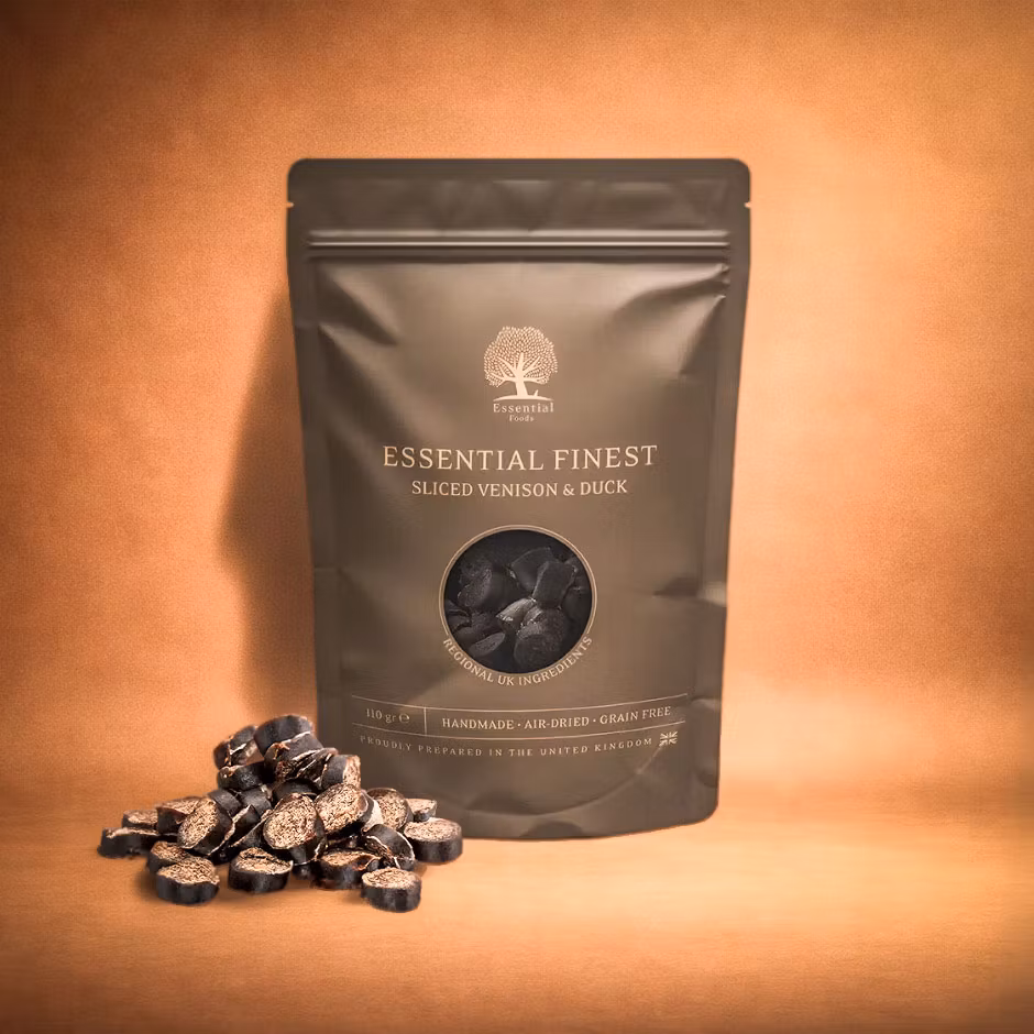 NĂ€r bara det bĂ€sta Ă€r gott nog. ESSENTIAL FINEST Ă€r en serie riktigt lyxiga godbitar som matchar kvaliteten i deras mĂ„ltider. SmĂ„, mjuka snittar tillagade med hjort och anka – perfekta som exklusiva trĂ€ningsbitar eller belöningar.