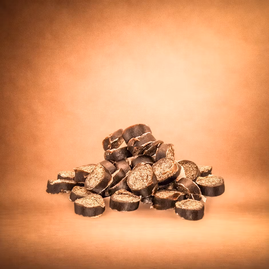 Godbitarna Àr lufttorkade och handgjorda frÄn början till slut i England. Den lilla storleken gör dem enkla att anvÀnda under trÀning, samtidigt som smaken gör dem svÄra att motstÄ.