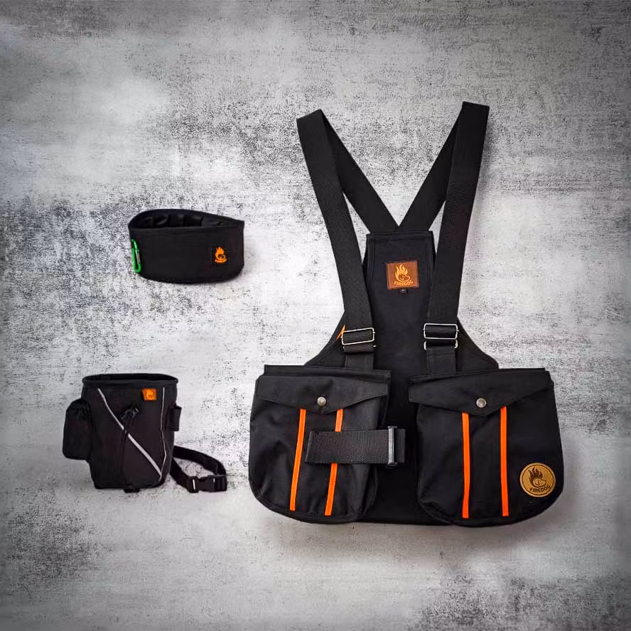 Dummyvästen ger gott om förvaring och har ryggficka som rymmer både dummies och belöningsleksaker, vilket gör den lika användbar vid apportering som vid träning inom räddning, sök och lydnad. Godisväskan håller belöningarna lättåtkomliga, medan reseskålen gör det enkelt att ge hunden vatten eller foder direkt efter eller under träningspasset.